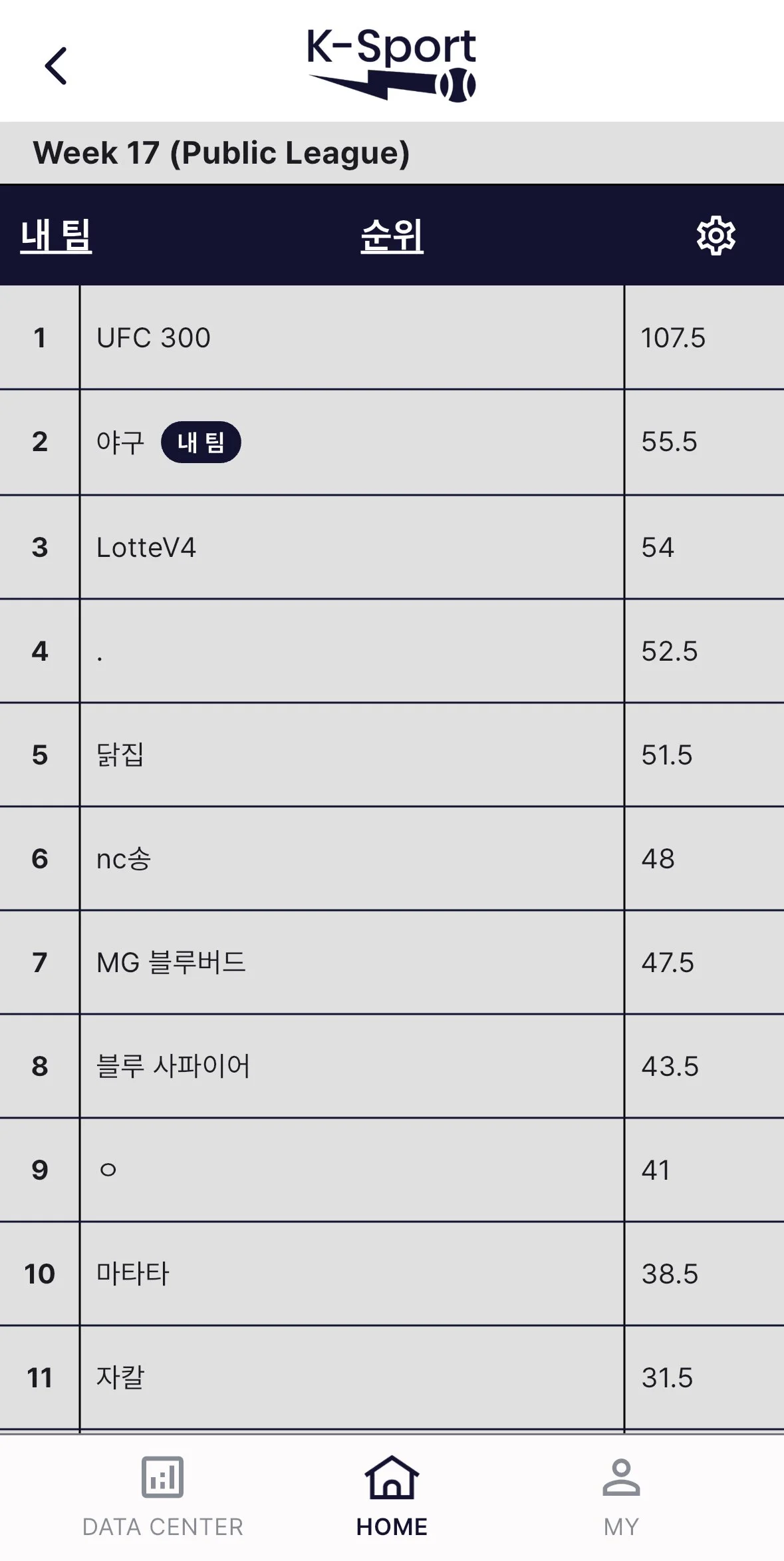 Week이 끝나면 순위표는 다음과 같은 형태가 됩니다: